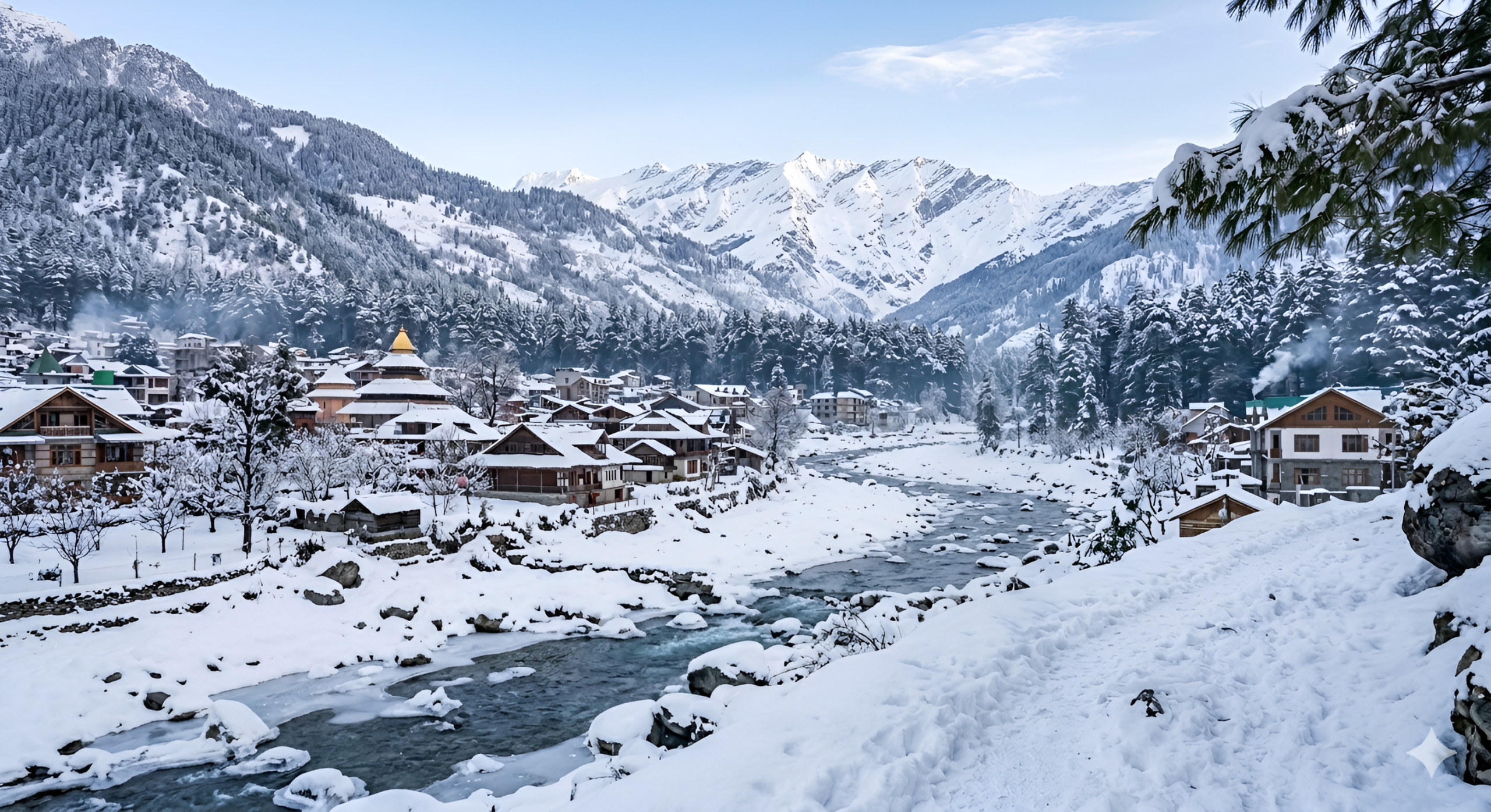 Surrounded by the majestic Himalayas, Manali offers stunning views of snow-capped mountains, lush valleys, and the flowing Beas River.